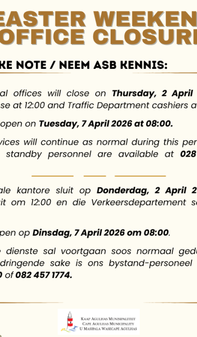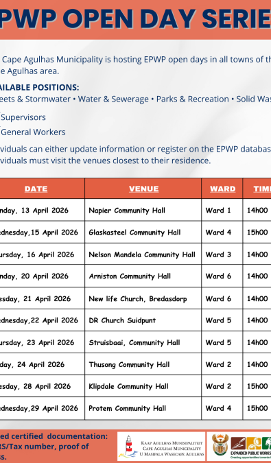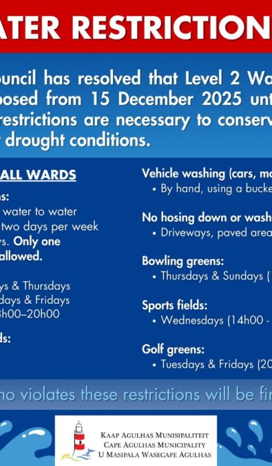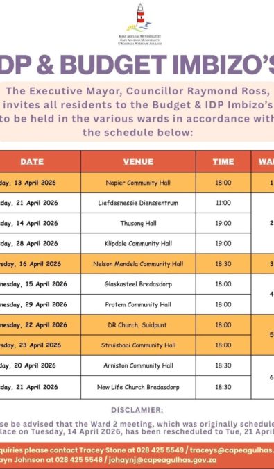 Read the latest news about Cape Agulhas and its encompassing towns Bredasdorp, L’Agulhas, Arniston/Waenshuiskrans, Die Mond and Elim.