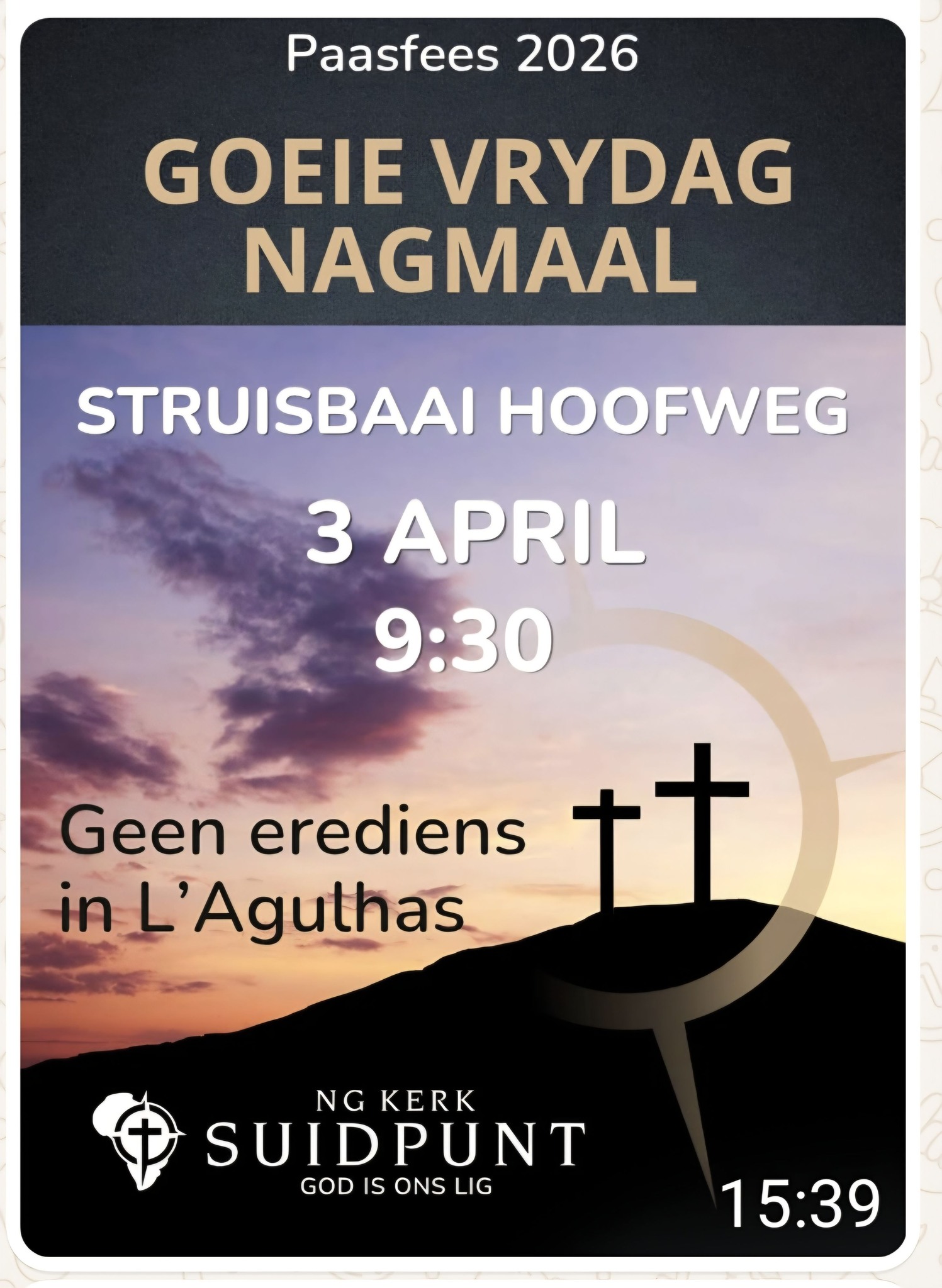 Kom geniet Goeie Vrydag Nagmaal diens met ons!