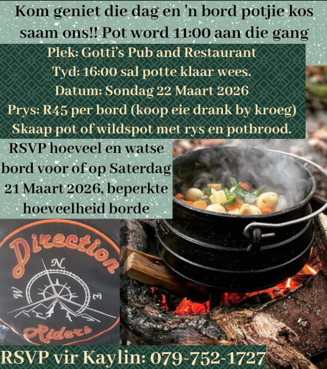 Kom geniet die dag en ‘n bord potjie kos saam met ons!