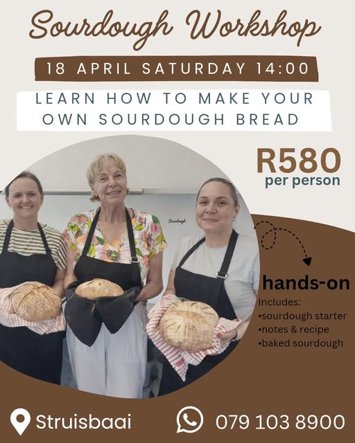 Learn how to make your own Sourdough Bread! You don’t need to be a master baker to join — we keep it simple, practical, and informative, so you can confidently bake sourdough at home. Includes - sourdough starter, notes & recipe, baked sourdough Whatsapp 079 103 8900 to book
