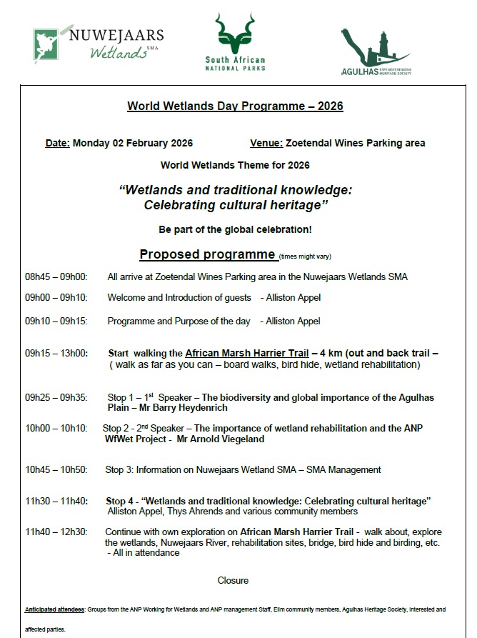 Please join us in celebrating World Wetlands Day. Kindly bring your own picnic along. For more information contact Alliston Appel at 084 556 2836