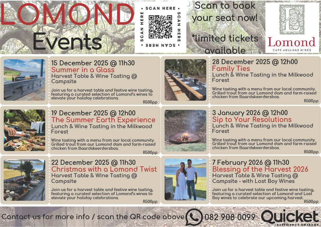 Lomond Wine Estate Avoca Road, Gansbaai, Western Cape, South AfricaHarvest Table & Wine Tasting @ Campsite For more information contact us at 082 908 0099 Tickets available at Quicket