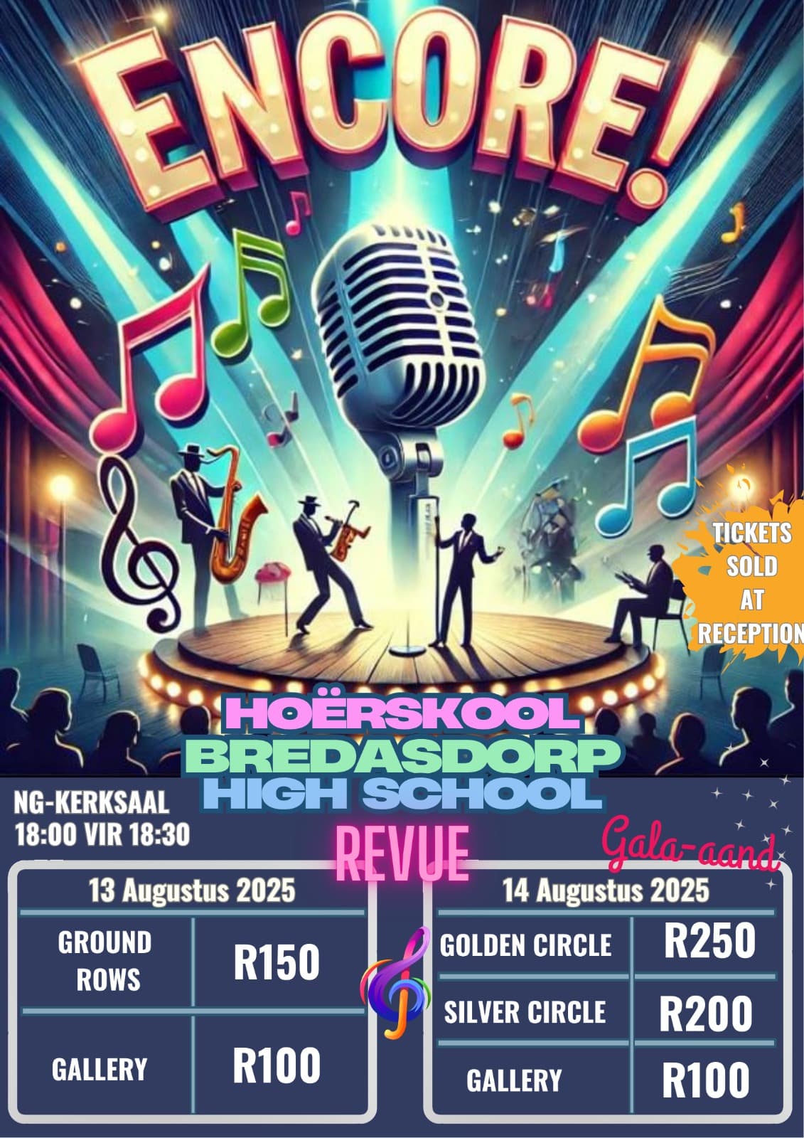 Join us for a fun Gala-Evening! Ground Rows - R150 Gallery R100 Golden Circle R250 Silver Circle R200 Tickets sold at reception