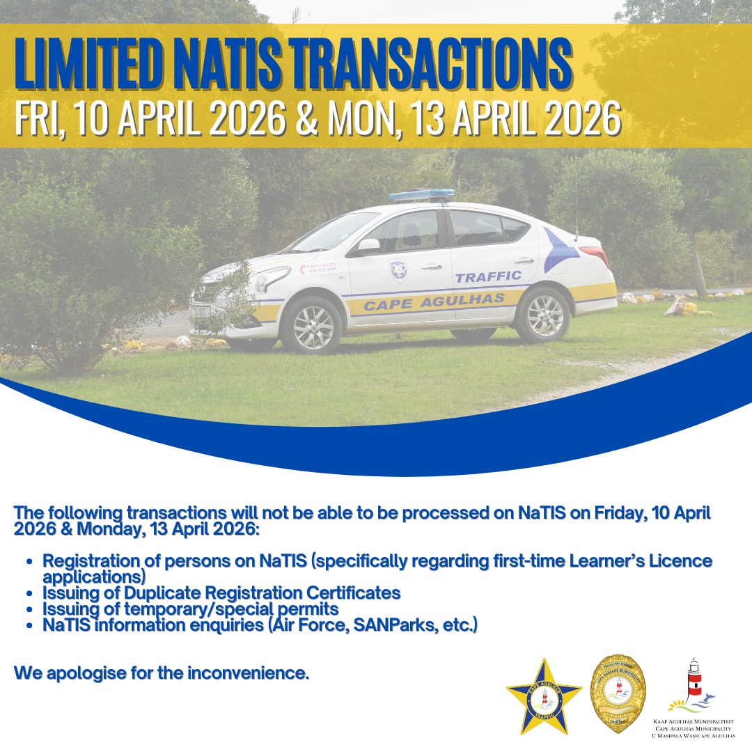 The following transactions will not be able to be processed on NaTIS on Friday, 10 April 2026 & Monday, 13 April 2026: